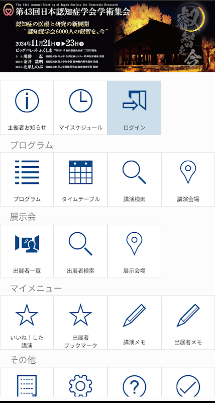 Bu, 43. Japon Demans Derneği Akademik Konferansı için ders bilgilerini görüntüleyebileceğiniz resmi konferans uygulamasıdır.