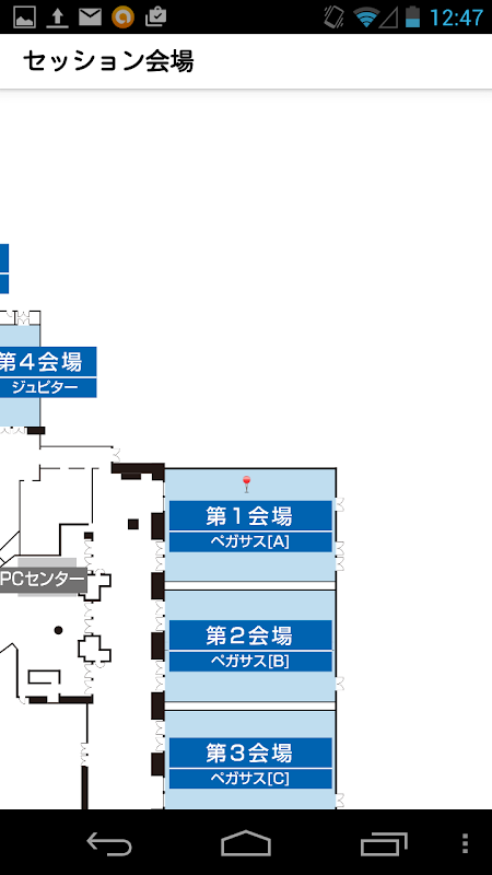 各セッションの講演会場や出展者のブースの位置をマップに表示します。