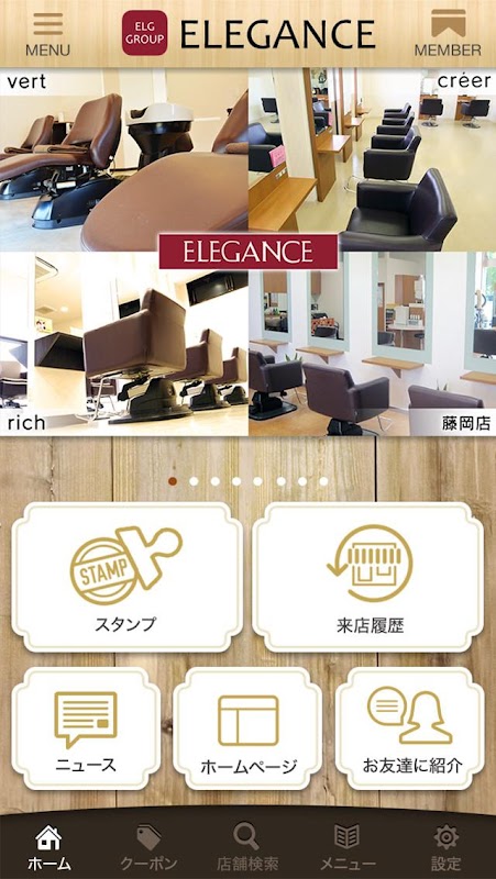 このアプリでは、美容室エレガンス(ELEGANCE)の色々な情報やアプリユーザー限定のお得なサービスが手に入ります!