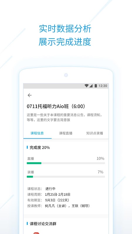 结合课程内容,移动展示课程直播和知识点录播,随时随地轻松上课;