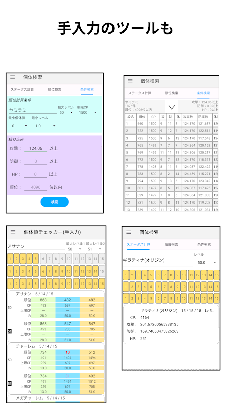 Görüntü tanıma ile canavar adını ve bireysel değeri ekrandan otomatik olarak okur ve bireysel değer sıralamasını hesaplar.