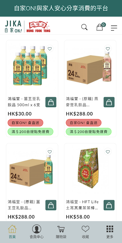 秉持追求心身靈健康的核心價值,鴻福堂與時並進,在2021年下半年推出全新網購平台「自家ON!」。自家ON! 的誕生可以說是回應2020年疫情改變了我們生活常態,因為宅在家的原故,更加令香港人的購買行為出現極大改變,自家ON! 因此應運而生。藉著與不同企業伙伴合作,為客戶搜羅各地文化產品;同時透過與本地慈善組織及文化品牌共享資源,與消費者一起支持及守護本土文化,一齊享受有異於過往的購物模式,是一種全新多方位多元化購物體驗。
