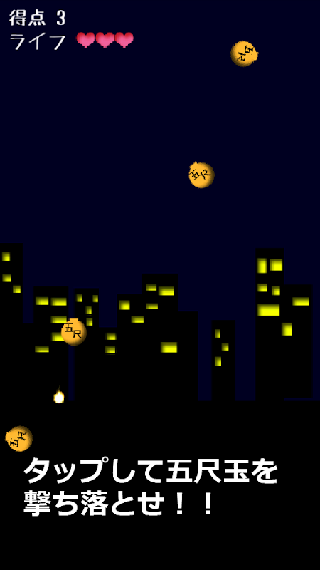 Bu havai fişek yola atış oyunu Beş metre topu ateş topu vurarak havai fişek edelim gökten düşen gelmesi için Eğer ekrana dokunursanız Fireball ateş olacak