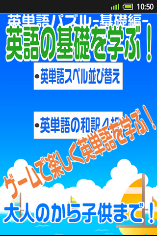 基本的な英単語なのでこれから英語を始める方や基本的な英単語を復習したい方、小さい子供から大人まで年齢を問わず楽しくゲームで英語を学べます。