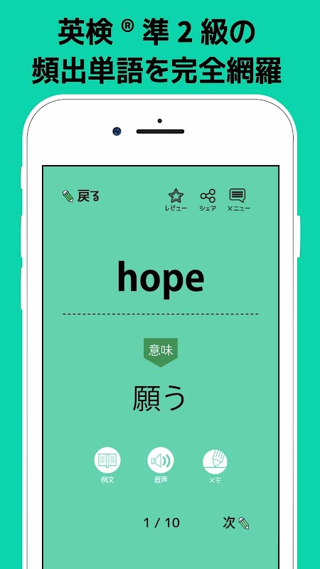 Bu uygulama Eiken ® ikinci sınıfta sıkça görünen süper önemli kelimelerin 1030 kelime içeriyor.