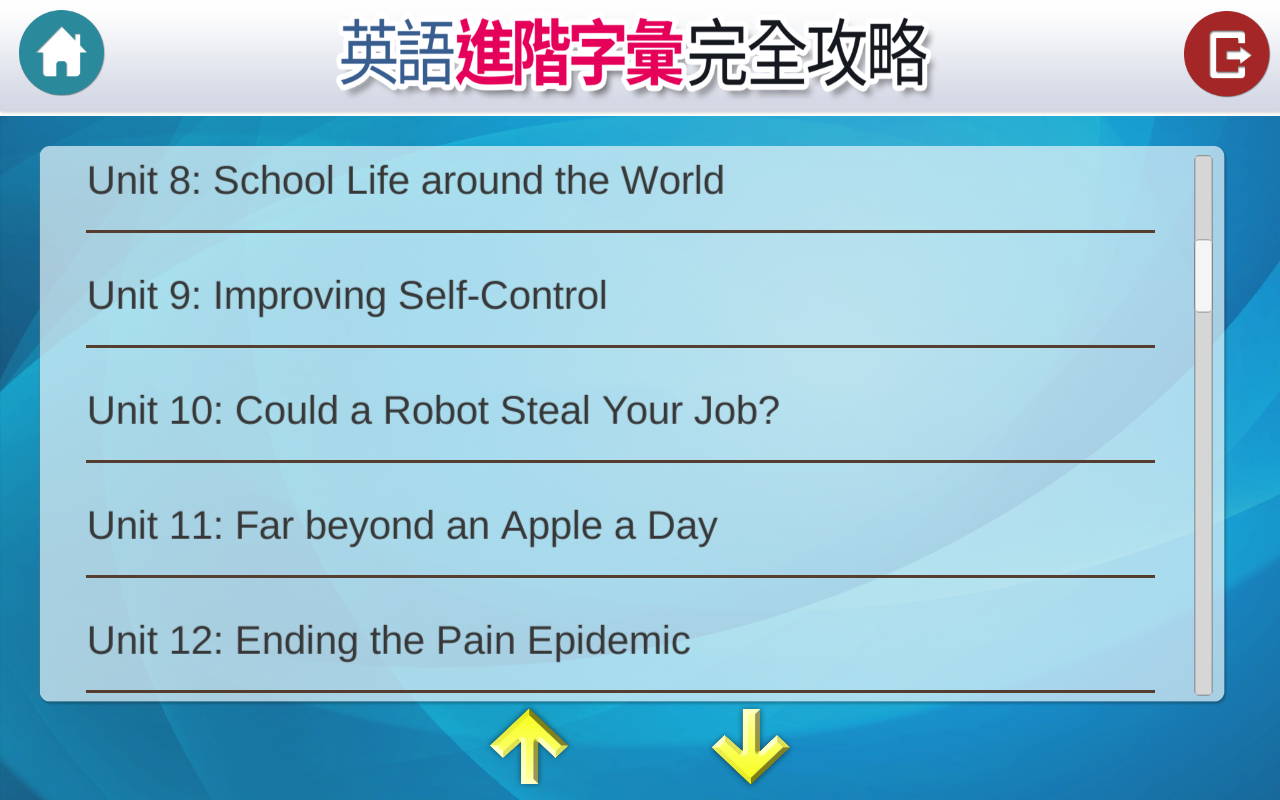 Dahil edilen kelime dağarcığı, "Büyük Sınav Merkezi" tarafından yayınlanan "Lise İngilizce Referans Kelime Listesi" 45OO~7OOO'ya dayanmaktadır. Bu kelimeler sadece akademik sınavlarda sıklıkla bulunmaz, aynı zamanda sınava hazırlanan okuyuculara çok yardımcı olan Ulusal Sınav, Ulusal İngilizce Sınavı, TOEIC sınavı ve günlük okuma vb. için gerekli sözcüklerdir. İngilizce yeteneklerini geliştirmek. Metinde görünen her önemli kelime, kullanımın anlaşılmasına yardımcı olmak için örnek cümlelerle desteklenmiştir. Örnek makaleleri okuyarak sadece karakterleri tek tek anlamakla kalmaz, aynı zamanda tek tek karakterlerden model denemeleri de her iki şekilde de anlayabilirsiniz! İster makale ister örnek cümle olsun, profesyonel bir yabancı öğretmen tarafından kaydedilen doğru telaffuzu dinlemek için tıklayın.