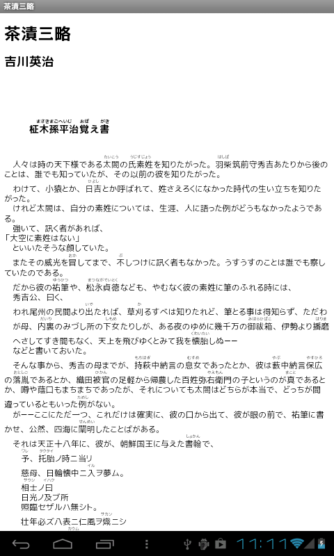 吉川英治の名作「茶漬三略」のノベルアプリ。