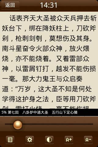 纯触屏翻页,可自己定义字体颜色、字体大小、背景颜色等,选择最适合自己的阅读模式。
