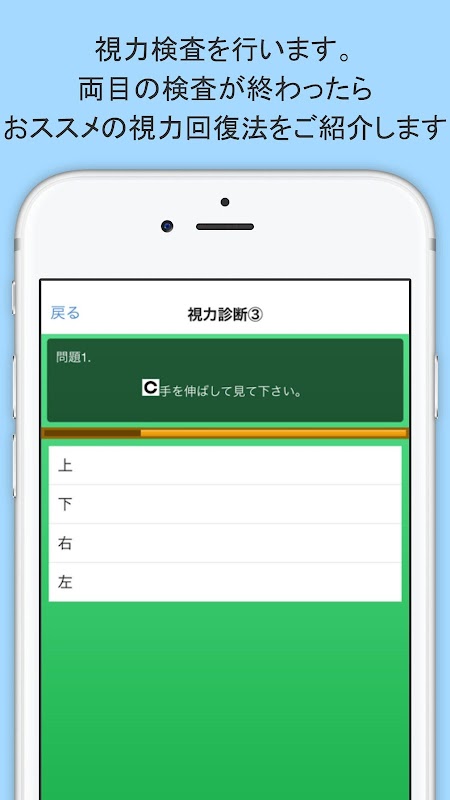視力低下、近視、遠視、乱視、老眼など様々な目のお悩みをお持ちの方。まずは右目から視力検査を行い、検査終了後にかなり効果的な視力回復法をご紹介します!
