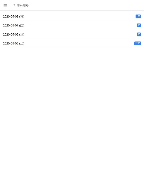 4.程式會將計數的結果儲存在當天,查看列表就可知每一天的總數量為何。