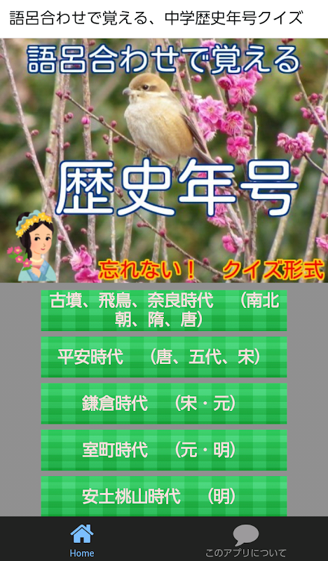 語呂合わせで覚える、中学歴史 年号クイズ'in eski sürümleri