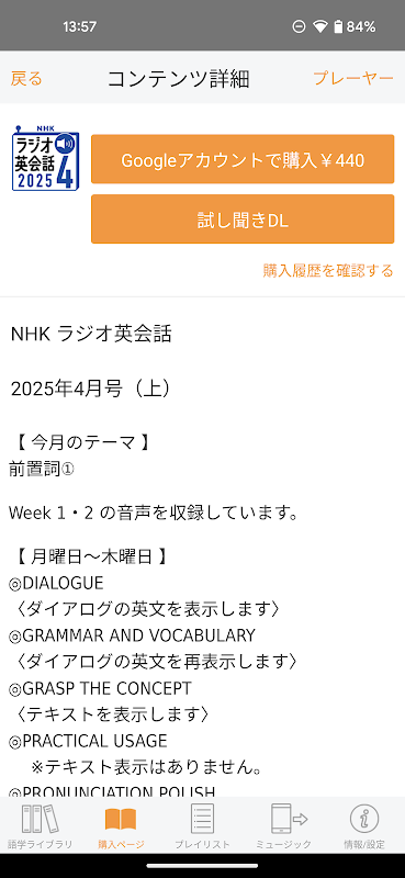 *Özel ses öğretim materyallerini satın almak için lütfen "Dil Oynatıcıyı" yüklerken kullandığınız Google hesabını kullanın. Kablosuz LAN veya 3G/4G/5G hattı gibi bir iletişim ortamının gerekli olduğunu lütfen unutmayın.