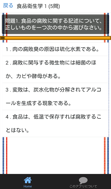 このアプリでは「 食品衛生学 」分野の出題になります。
