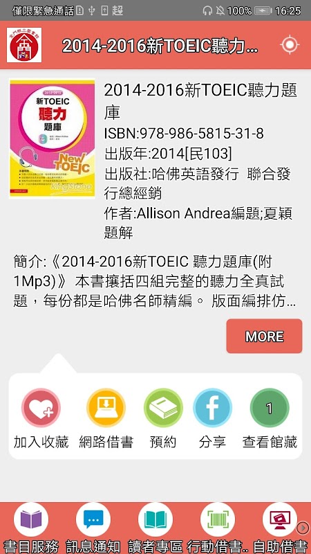 Kinmen İlçe Kütüphanesi, okuyuculara kütüphane hakkında ilgili bilgilere kolay ve hızlı erişim sağlar. Koleksiyon sorgusu, kütüphane mesajı bildirimi vb. Hesaba giriş yaptıktan ve şifre doğrulamasından sonra, kişisel borçlanma durumu sorgulama, randevu alma, kredi yenileme gibi kişiselleştirilmiş hizmetlerden de yararlanabilirsiniz. Gelin ve deneyimleyin!