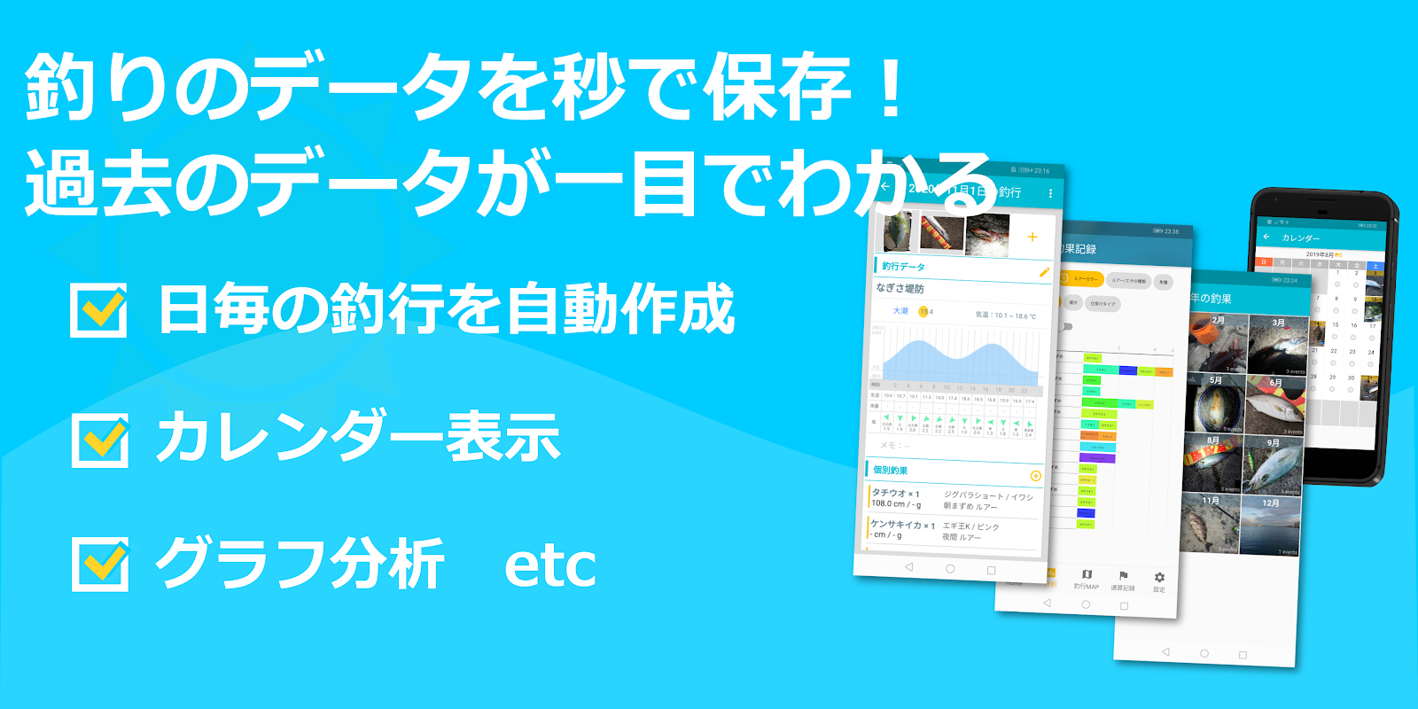 Balık tutma sonuçlarını saniyeler içinde kaydedin! Basit kullanım fotoğraf x not x takvim