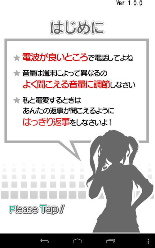ツンデレな彼女と会話をしながら愛を育むことができるシチュエーションアプリです。