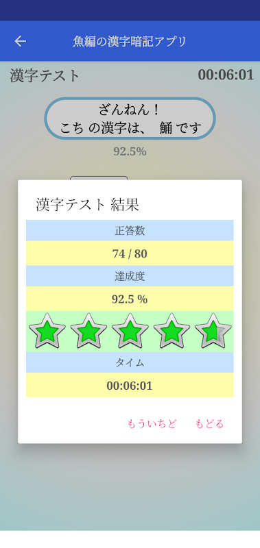 Bu uygulama balık baskısı ile 80 kanji okumayı ve kanji ezberlemeyi amaçlamaktadır.