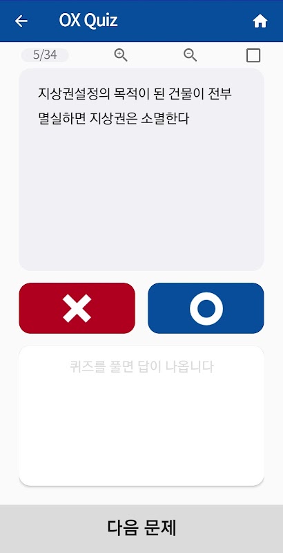 Sadece problemi çözerek onu gerçekten doğru bir şekilde ezberleyip ezberlemediğinizi veya ezberlemiş gibi hissedip hissetmediğinizi kontrol edebilirsiniz. Doğru pasajlar orijinal metinlerinde doğru pasajları içerir ve yanlış pasajlar nerede ve nasıl yanlış olduklarına dair göstergelere sahiptir; böylece kavramları anlamak ve ezberlemek için çalışmaya nereye odaklanmanız gerektiğini ve sınava giren kişinin soruları sunarken karşılaştığı tuzakları öğrenebilirsiniz. Bir bakışta satıp satmadıklarını görebilirsiniz. Konuya göre puan durumunu da kontrol edebilirsiniz, böylece ne kadar ezberlediğinizi kontrol edebilirsiniz. Ayrıca daha az ezberlediğiniz pasajları ve odaklanmanız gereken pasajları kontrol edip daha sonra toplayıp çözmenizi sağlayan bir fonksiyon da bulunmaktadır. Sadece kontrol edilen problemleri, yani OX sınavından 100 puan alana kadar tekrar tekrar öğrenin.