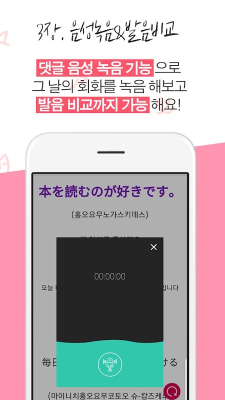 그 내용을 앱 자체 녹음기능이있어서 직접 발음해보고