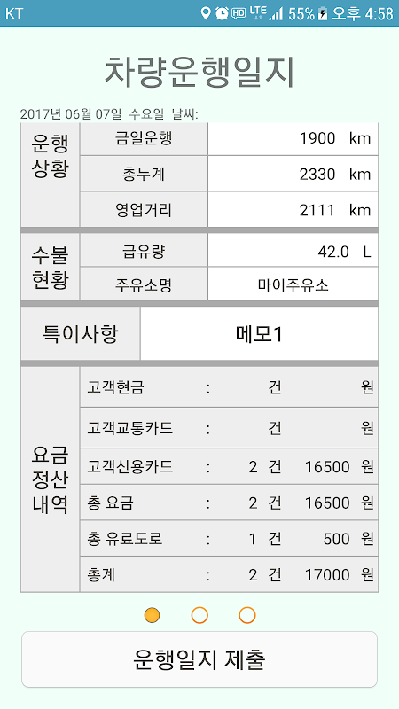 차량 운행일지 확인 및 수정 등