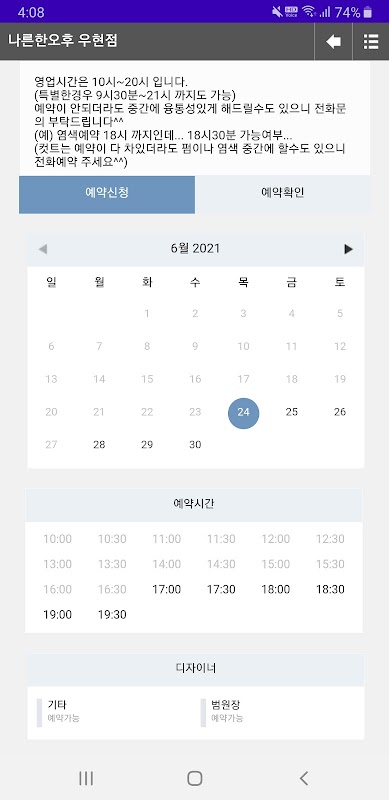 예약과 이벤트 확인및 매장정보 확인이 가능합니다