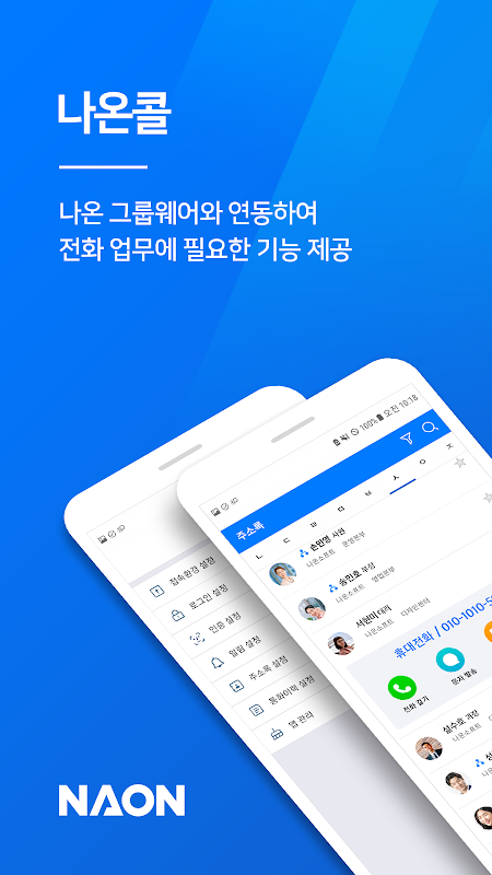 NaonCall, grup yazılımı ile birlikte telefon çalışması için gerekli işlevleri destekleyen ve arayan kimliği/çağrı geçmişi/çağrı rezervasyonu/web'den arama gibi işlevlere sahip bir hizmettir.