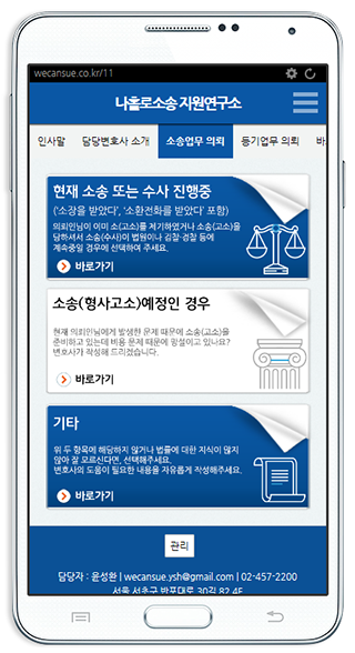 - 다양한 경험을 가진 여러 명의 담당변호사가 여러분을 도와드립니다(담당변호사는 계속 충원될 예정입니다).