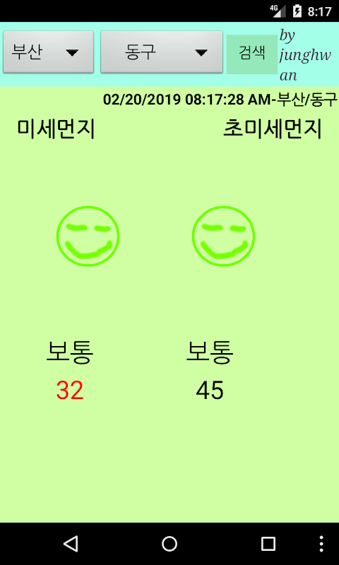 이 앱은 우리나라 전 지역의 미세먼지, 초미세먼지 정보를 볼 수 있습니다.