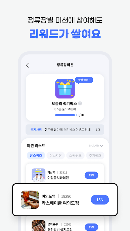 - Bir otobüs veya metro durağında kimlik doğrulama düğmesine basarak 5N ila 1.500N kazanın (günde ilk 3.000 kişiyle sınırlıdır, 1 giriş hakkı vardır)