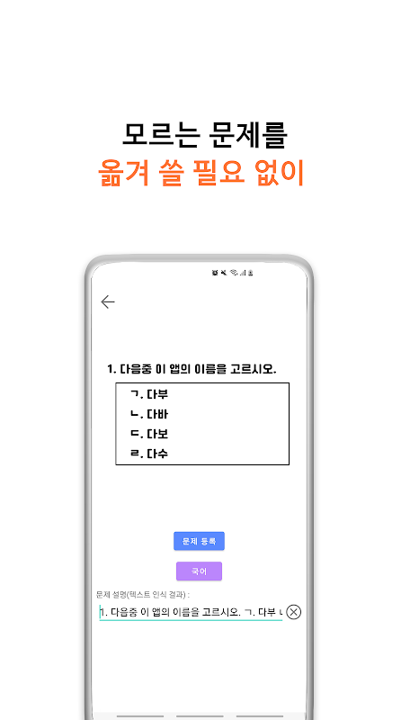 문제를 찍으면 자동으로 문제 내용을 AI가 인식해줘서 하나하나 문제를 옮겨 쓸 필요 없이 간편합니다!