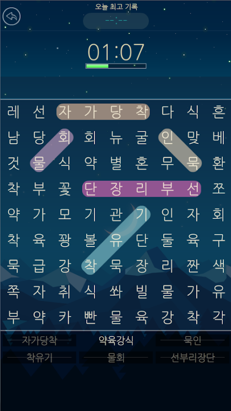 - 연습 모드 : 쉬운 난이도로 연습해볼 수 있는 단어 찾기 게임