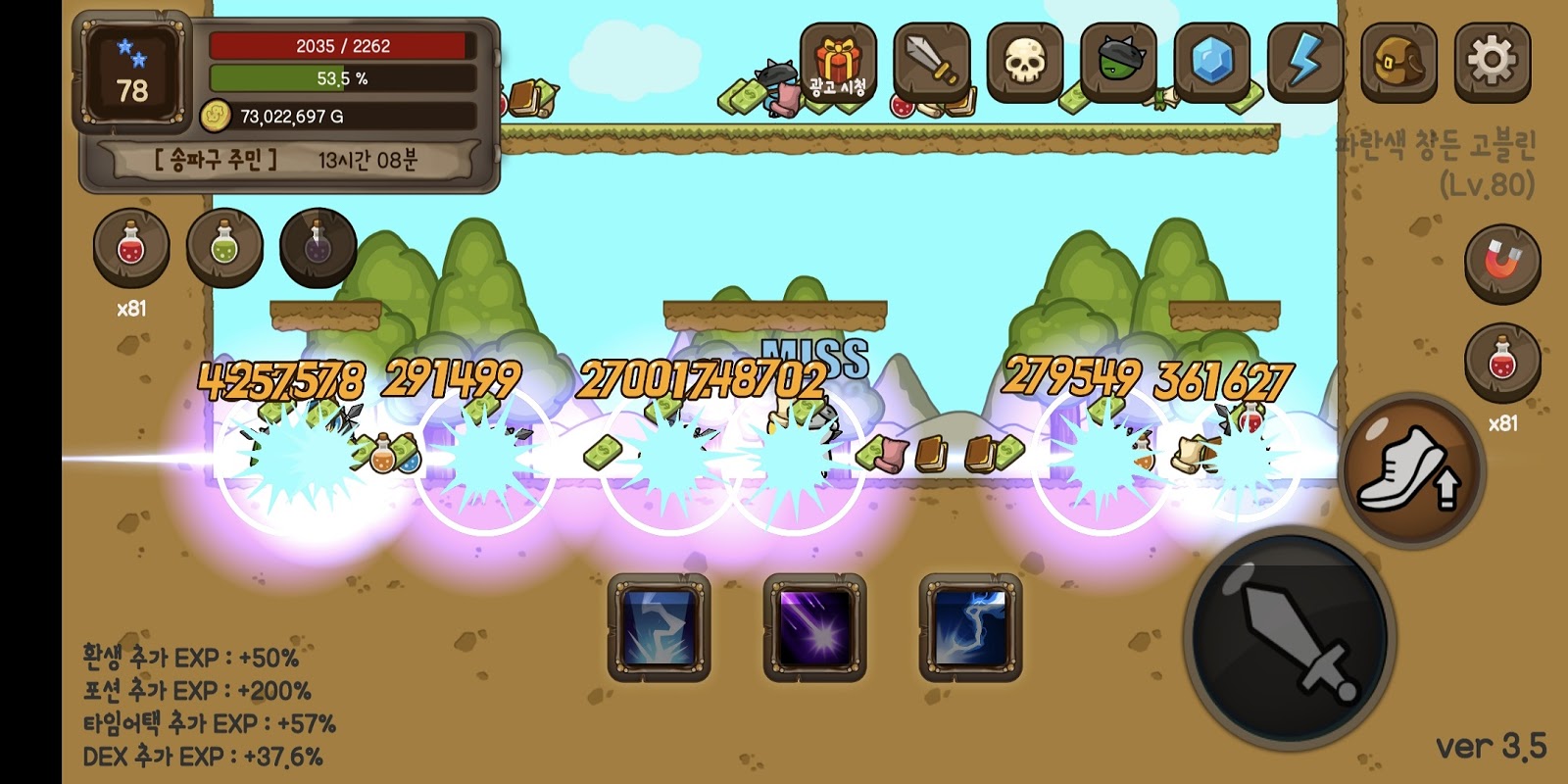 - 환생 1회당 20%씩 경험치가 영구적으로 증가한다.