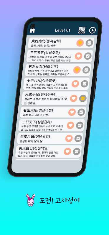 50 seviye 3., 2. ve 1. sınıflara ayrılır ve her seviye 40 eski deyimden oluşur.
