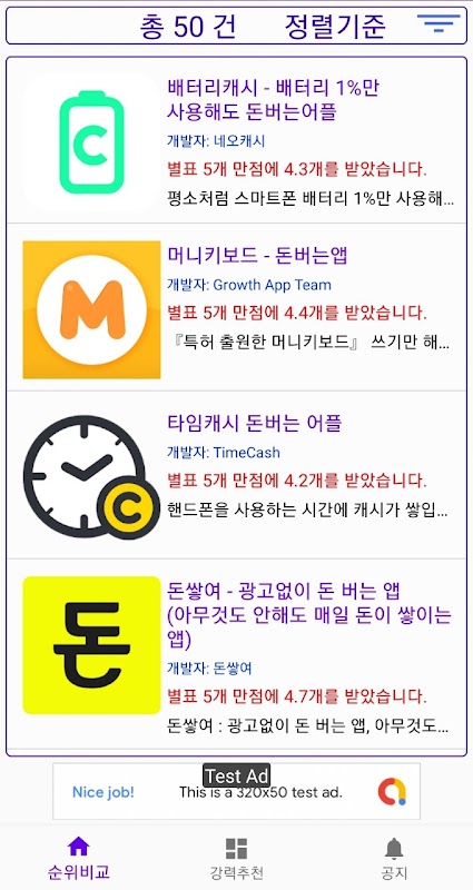 - 구글 플레이스토어 누적 데이터를 바탕으로 비교 및 순위정보 제공