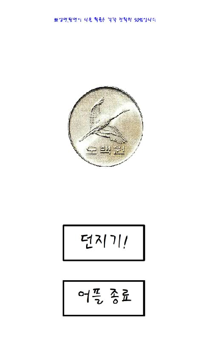 동전 던지기 시뮬레이터입니다, 앞면과 뒷면이 나올 확률은 정확히 각각 50%입니다
