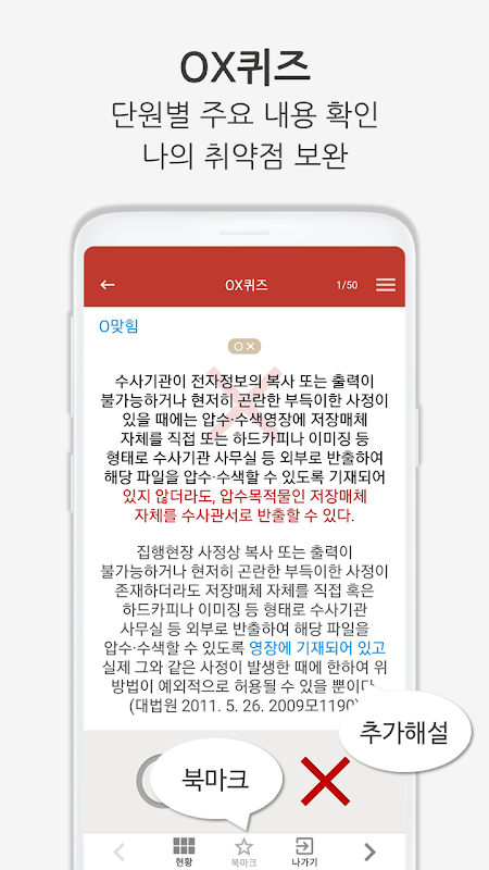 - 구성 : 단원별 최대 10문제씩 랜덤 OX퀴즈 풀이를 하실 수 있습니다.