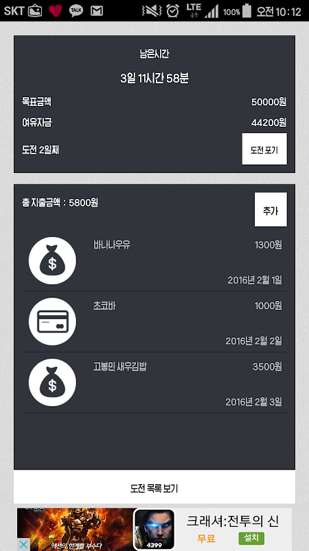 도전 성공 내역이 쌓일수록 성취감도 쌓이고 자연스레 절약하는 습관이 몸에 베여있을겁니다!