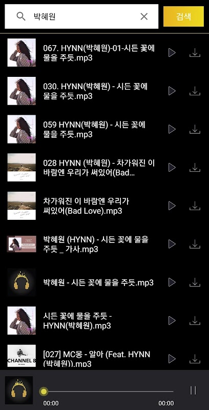 ※ MP3 다운로드 시 데이터가 발생하니 무선 테이터 와이파이 환경에서 다운로드 권장합니다.