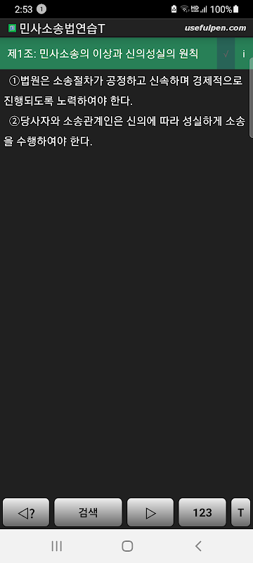 - 현재 조문 반복 듣기: 현재 선택된 조문을 무한 반복해서 들음