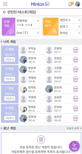 민턴인 - 배드민턴(클럽게임, 자체대회(대진표/진행)) 2.2