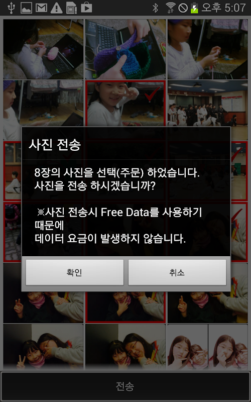인터넷 연결, 이동통신사의 데이터 사용이 필요 없이 사진전송 가능한 앱입니다.