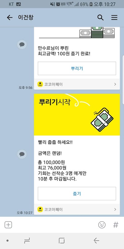 카카오톡의 뿌리기 기능을 가짜로 만나보세요!!