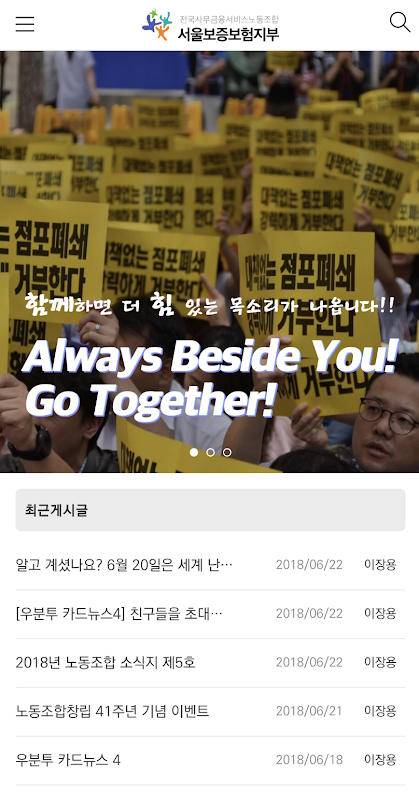 안녕하십니까! 서울보증보험 노동조합 공식어플리케이션입니다.