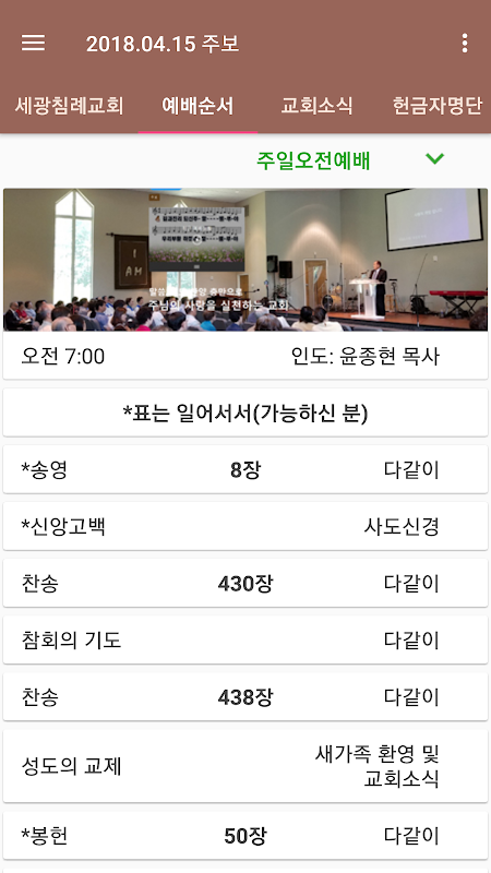 Sekwang Baptist Church of Saints 100% native app, you can see the weekly bulletin in the smartphone instead of a paper bulletin (Applications) Smart bulletin.
