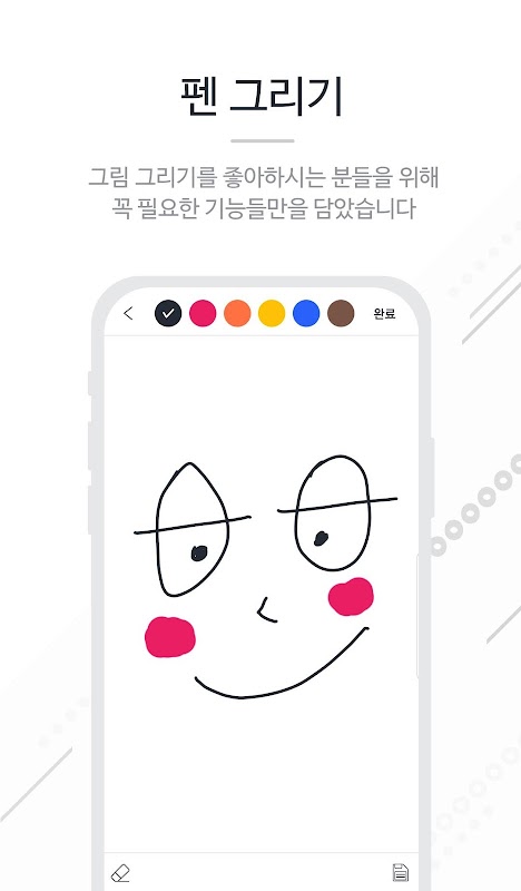 자신의 기분상태를 표시할수 있는 이모티콘과 그림노트(펜 그리기)로 나만의 이야기를 만들수 있습니다.