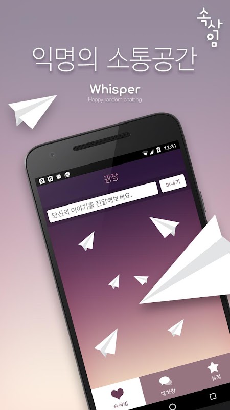 Kolay kayıt ve tam güvenlik! Whisper, başkalarıyla rahatça iletişim kurmanıza olanak tanıyan gerçek zamanlı, anonim bir iletişim uygulamasıdır.