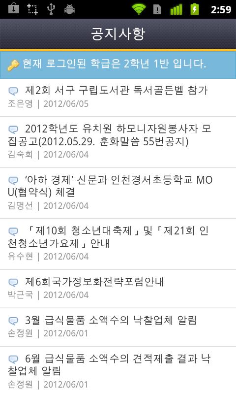 알림장 - 학급별로 알림장을 조회할 수 있습니다.
