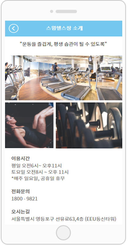 앱제작 서비스 스윙으로 제작한 스윙 헬스장 샘플앱