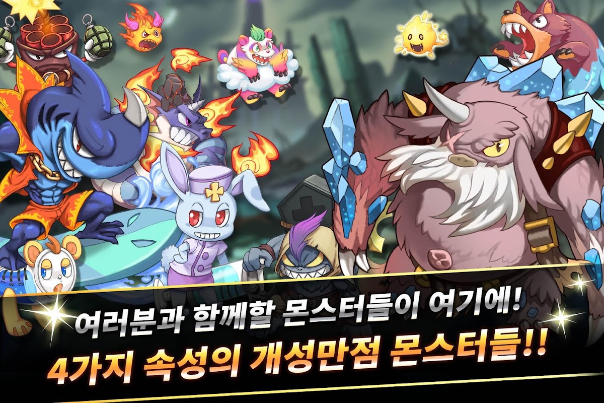 4가지 속성의 개성만점인 몬스터들을 팀으로 영입하라.