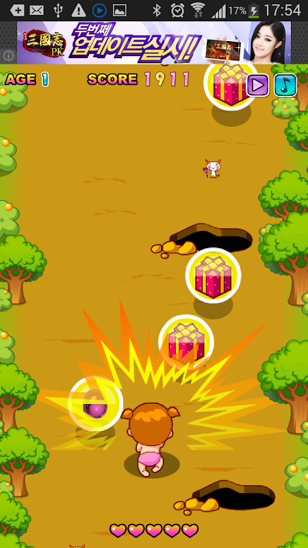 아기가 달리면서 성장하는 게임이예요.